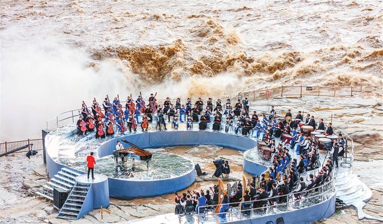 “《黃河回響》——紀(jì)念抗戰(zhàn)勝利暨臺灣光復(fù)80周年兩岸音樂會”在山西吉縣黃河壺口瀑布岸畔舉行。閆銳鵬