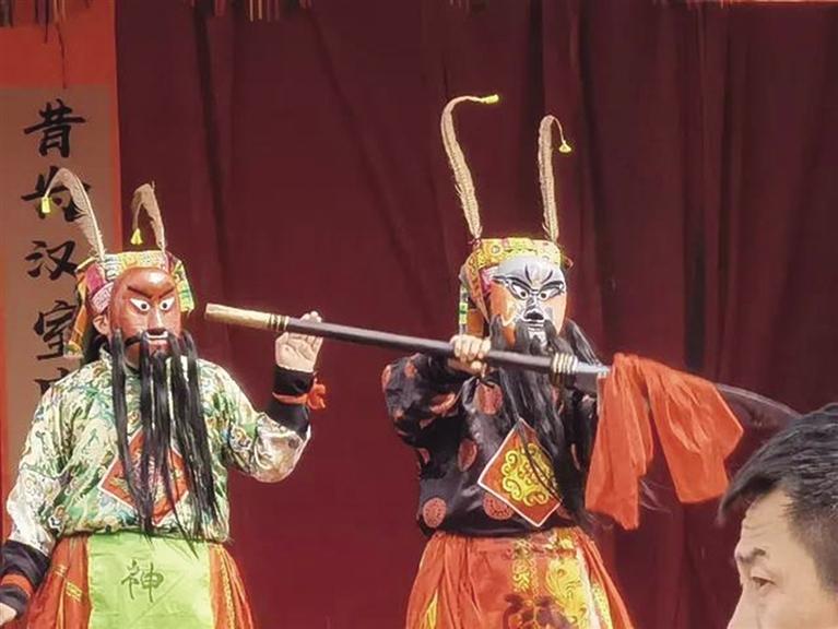 隴南市武都魚龍鄉(xiāng)陽山村高山戲又稱“演故事”“走過場”等,發(fā)源于隴南武都高山地區(qū),是從隴南當(dāng)?shù)氐拿耖g祭祀活動和傳統(tǒng)社火中孕育、演變而來的戲曲劇種。高山戲演出程式多種多樣,語言生動活潑、幽默詼諧,2008年被列入第二批國家級非物質(zhì)文化遺產(chǎn)保護(hù)名錄。停止演出近20年后,在當(dāng)?shù)匚幕鞴懿块T的大力支持下,2022年正月陽山村恢復(fù)了高山戲的演出。