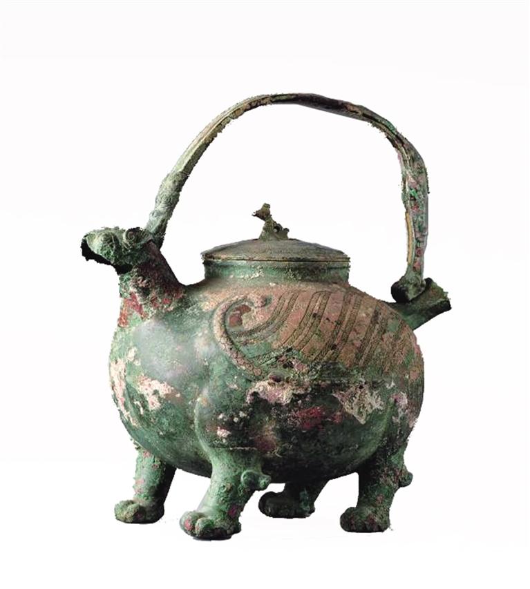 展覽以粵隴兩省精品文物為依托,遴選廣東省博物館、甘肅省博物館、南越王博物院、甘肅省文物考古研究所等兩省多家文博單位文物藏品逾500件。在展廳入口處,并列展出的“蜻蜓眼玻璃珠”一顆為甘肅省博物館館藏,另一顆為廣東省博物館館藏。甘肅省博物館館藏文物翼獸青銅提梁盉也是首次亮相廣東,翼獸青銅提梁盉巧妙地設(shè)計成一只具有雙翼的四足獸,以龍為提梁,以鳳為蓋鈕。
