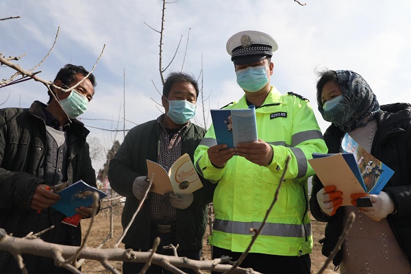 近日,禮縣公安局交警大隊在做好疫情防控工作的同時,組織民警走進田間地頭,有針對性的開展交通安全宣傳教育,民警通過口頭提示、發(fā)放資料,講解發(fā)生在身邊的真實案例,面對面向村民們講解農(nóng)用車輛違法行為的危害性,使農(nóng)村群眾認識到交通違法行為的嚴重危害性,進一步提高交通安全意識,自覺抵制交通違法行為。通訊員 楊含龍 攝