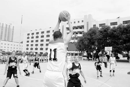 比賽日18時30分,操場西面進行的是四監(jiān)區(qū)與九監(jiān)區(qū)的比賽,進入第三節(jié)比分僅僅相差2分。九監(jiān)區(qū)的“閃電”突然得球,迅速突破,進入對方籃下,左手投籃的同時,對方犯規(guī),進球有效且加罰一次,九監(jiān)區(qū)的啦啦隊助威聲一浪高過一浪……