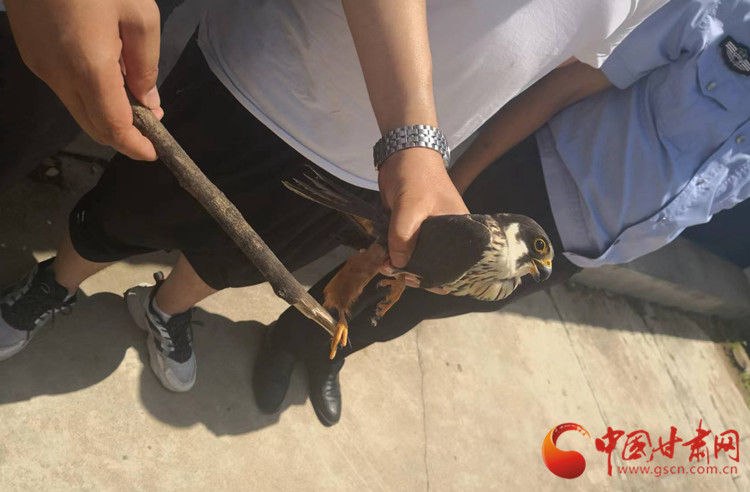 靈臺警方成功救助一只被困國家二級保護(hù)動物獵隼幼鳥