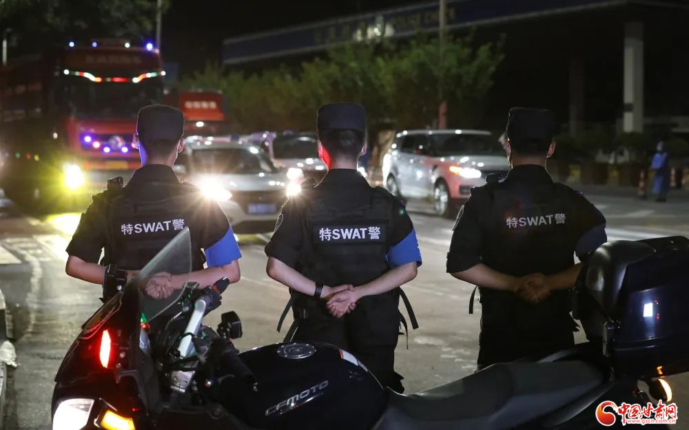 城關(guān)公安快警發(fā)揮機(jī)動(dòng)優(yōu)勢(shì),在轄區(qū)各核酸采集點(diǎn)開展秩序維護(hù)安全守護(hù)等工作。楊 釗/攝