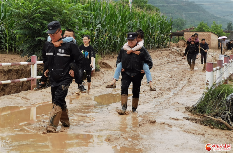 7月15日清晨,洪水致慶城縣主干道G211銀西公路、阜桐公路和村道多處出現(xiàn)滑坡、塌方以及部分民房進(jìn)水等險(xiǎn)情,馬嶺鎮(zhèn)上午旗村數(shù)百名群眾被困,慶城縣公安局緊急組織警力趕赴現(xiàn)場(chǎng),成功救出被困村民80余人。
