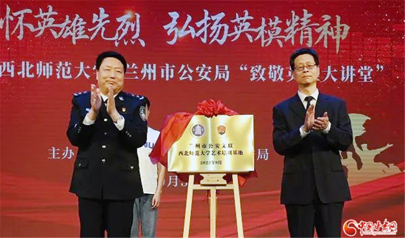 中國(guó)甘肅網(wǎng)10月1日訊(本網(wǎng)記者 程?。?月30日,蘭州市公安局與西北師范大學(xué)共同舉辦2022年“致敬英雄”大講堂暨公安英模事跡畫(huà)像捐贈(zèng)儀式。西北師范大學(xué)黨委書(shū)記張俊宗,省公安廳副廳長(zhǎng)、蘭州市副市長(zhǎng)、市公安局黨委書(shū)記、局長(zhǎng)王立朝出席活動(dòng)并致辭。