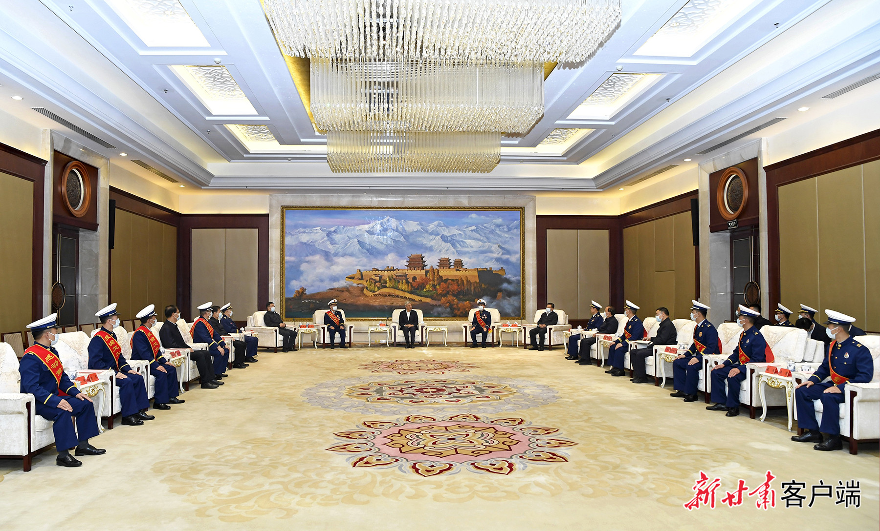 11月15日上午,省委書記、省人大常委會主任尹弘,省委副書記、省長任振鶴在蘭州會見了甘肅省森林消防總隊援渝撲火“九戰(zhàn)九捷”指戰(zhàn)員代表。新甘肅·甘肅日報記者 高 檣