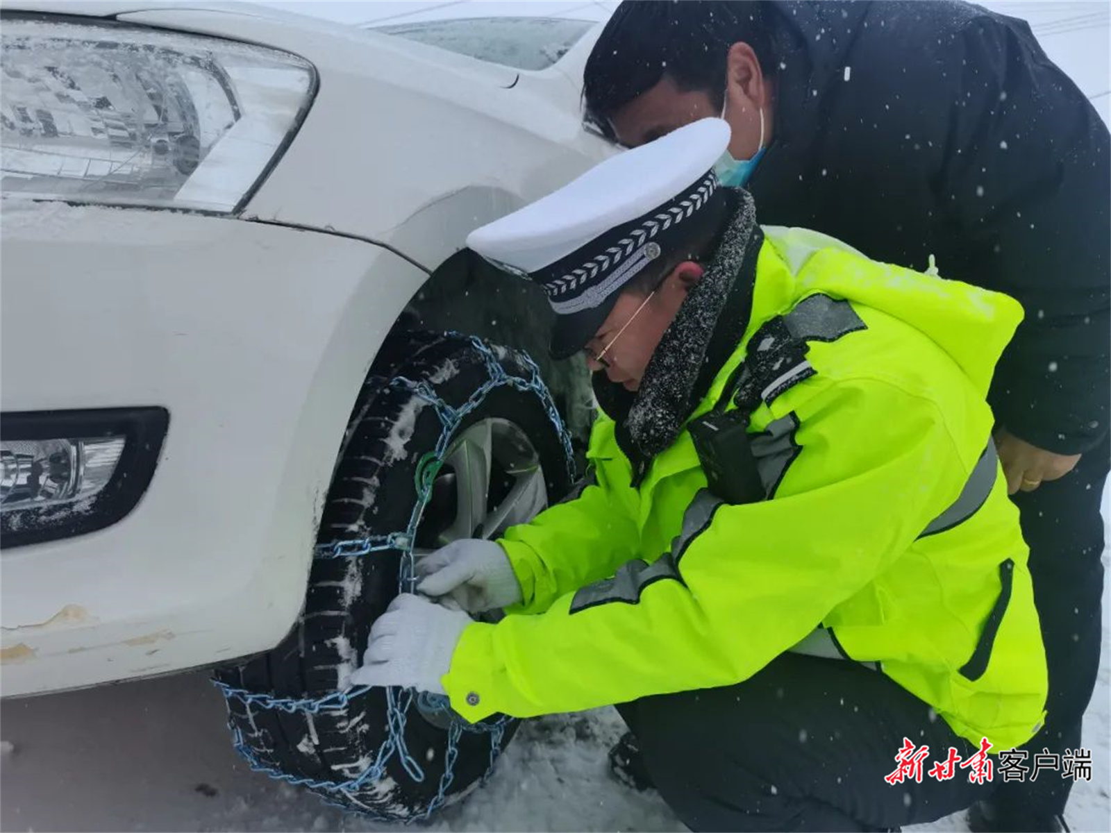 新甘肅客戶端訊(新甘肅·每日甘肅網(wǎng)記者 萬及敏)2月8日上午,甘肅多地出現(xiàn)降雪天氣,部分道路出現(xiàn)積雪結(jié)冰現(xiàn)象。為最大限度保障群眾出行安全,預(yù)防和減少道路交通事故的發(fā)生,全省公安機(jī)關(guān)1.2萬公安民輔警奮戰(zhàn)一線,加大重點(diǎn)路段巡邏管控力度,采取預(yù)警提示、除冰、引導(dǎo)車輛減速慢行、封閉道路、幫助群眾推車等措施,嚴(yán)防交通事故發(fā)生,為群眾的平安出行保駕護(hù)航。