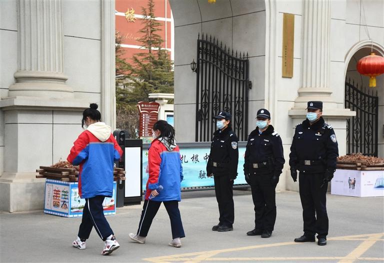 派出所民警在校園門口執(zhí)勤(蘭州日報供圖)