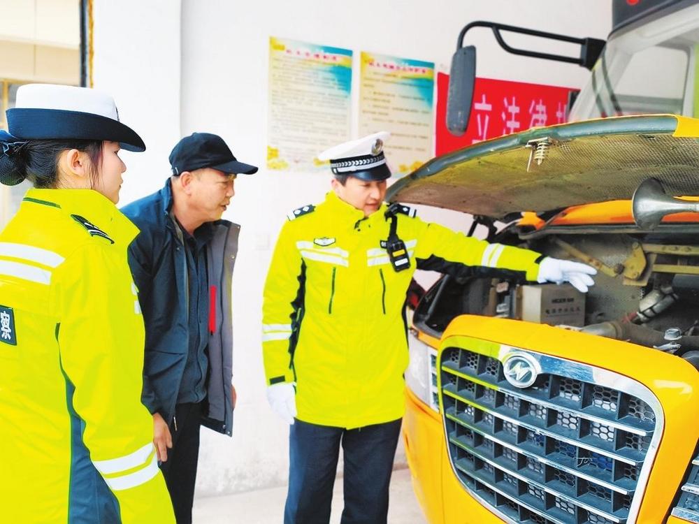 民警在檢查幼兒園校車。開學(xué)在即,為保障學(xué)生上下學(xué)乘車安全,2月18日,臨潭縣公安局交警大隊聯(lián)合縣交通運輸局對校車開展“安全體檢”。 新甘肅·甘肅法治報記者金凡裕攝