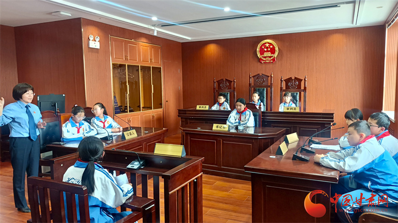 同樣,7月4日,在“崗拉梅朵”未成年人法治教育基地,也有一場模擬法庭庭審在進行,來自合作一小五年級的學(xué)生在這里開庭審理一起盜竊案。