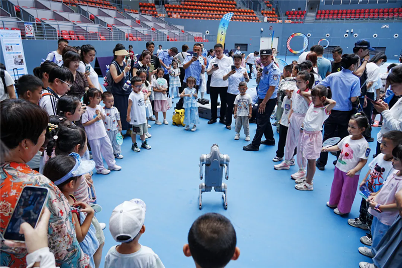 緊接著,在網球館前,大家首先被特警隊員精彩的防暴小隊戰(zhàn)術演練所震撼,矯健的身手贏得了陣陣掌聲。警犬迅猛精準的撲咬展示更是讓小朋友們連連叫好。警用機器狗的靈活表演引得大家紛紛上前互動,最讓小朋友們躍躍欲試的還是無人機穿梭器的體驗環(huán)節(jié),戴上眼鏡感受著穿梭器的“速度與激情”,孩子們臉上洋溢著喜悅和興奮,近距離感受到了科技在公安工作中的強大應用。