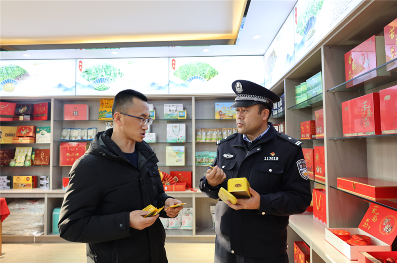 ▲通渭縣公安局經(jīng)偵大隊民警深入轄區(qū)食品公司,開展普法宣傳和風險隱患排查活動。(孛金鵬 攝)