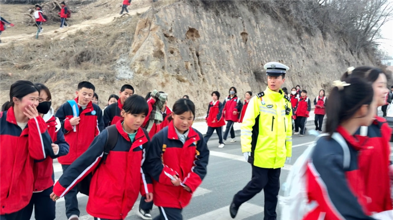 ▲東鄉(xiāng)縣公安局民輔警開展護學工作,重點在校園周邊開展交通疏導、清理違停車輛、引導學生安全過馬路。(完瑪草 攝)