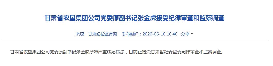 甘肅省農(nóng)墾集團(tuán)公司黨委原副書記張金虎接受紀(jì)律審查和監(jiān)察調(diào)查