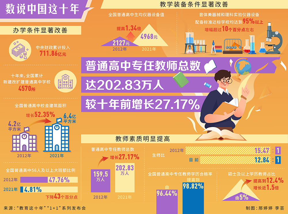 數說中國這十年丨普通高中專任教師總數達202.83萬人