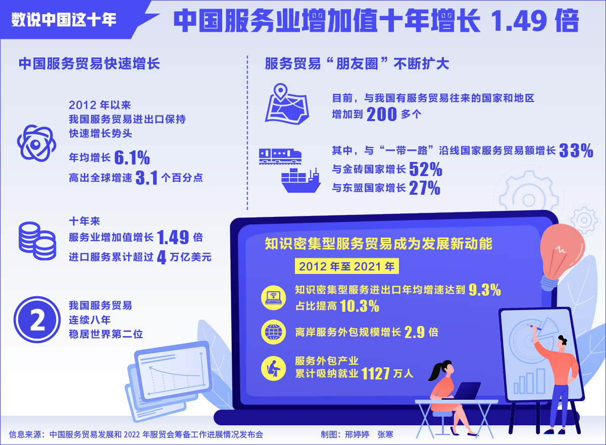 數(shù)說中國這十年丨中國服務業(yè)增加值十年增長1.49倍