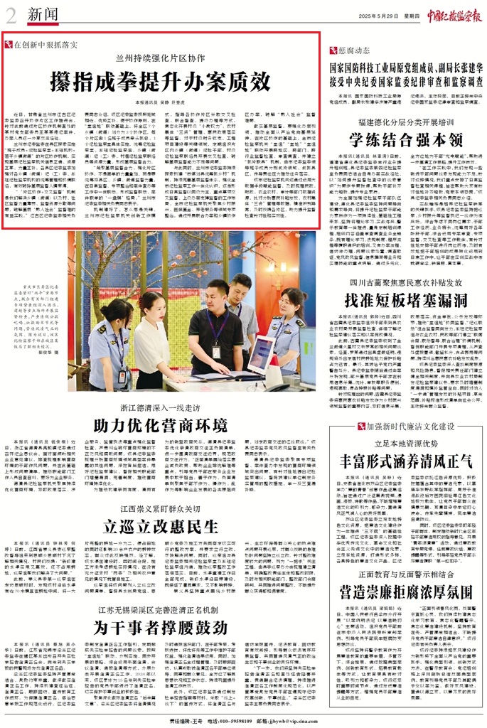 “凝聚基層監(jiān)督合力,強化片區(qū)協(xié)作,不是簡單的力量疊加,而是要統(tǒng)籌好縣區(qū)、鄉(xiāng)鎮(zhèn)、街道監(jiān)督力量,在日常監(jiān)督、專項整治和案件查辦等工作中一體聯(lián)動,形成監(jiān)督聯(lián)動、案件聯(lián)審的‘一盤棋’格局。”蘭州市紀委監(jiān)委相關(guān)負責(zé)同志表示。