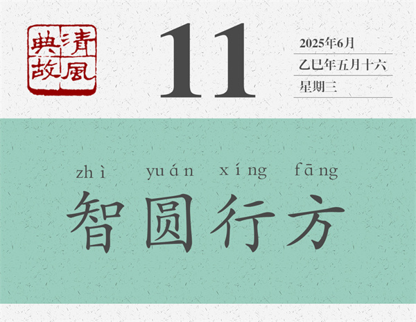 “智圓行方”說的是思與行的關(guān)系問題。通俗地說,就是腦子要靈活,手腳要規(guī)矩。明人張居正《襄毅楊公墓志銘》:“維公之德,智圓行方,忠不近名,言不泥常。”思與行,看起來各自獨(dú)立,實(shí)際上密不可分。任何事情,都得想好了再做。怎樣才能想好呢?那就得把自己能想到的各種可能都拿出來分析分析、比較比較;如果還覺得不夠,那就得跟別人交流,跟別人溝通。同樣,做任何事情,都得一以貫之。只要認(rèn)準(zhǔn)了、認(rèn)定了,就要堅(jiān)持做下去,不能今天這樣明天那樣,今天聽你的明天聽他的;也不能搖搖擺擺,走走停停。久久為功,勝利才會(huì)向你招手。