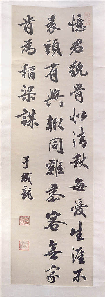 《于成龍行書(shū)詩(shī)軸》:憶君貌骨似清秋,每愛(ài)生涯不裹頭。有興輒同雞黍客,無(wú)家肯為稻粱謀。劉同華 攝