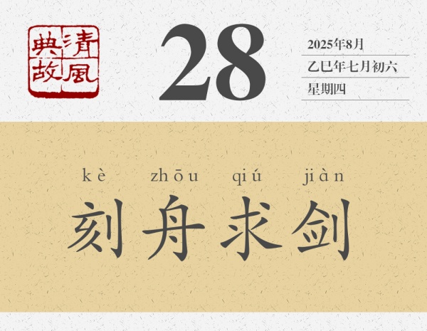 東西遺失了,沒有找回來,雖然很遺憾,但并沒有人覺得可笑。楚人劍掉到了江里,同樣沒有找到劍,但為什么我們不覺得遺憾,反而覺得可笑呢?那個(gè)人的劍掉到江里了,那個(gè)人的腦子是不是也掉到江里了呢?后人即以“刻舟求劍”為典,比喻墨守成規(guī),不知變通,處理事情的方法、解決問題的辦法不能隨著形勢的變化而變化,不能隨著事物的發(fā)展而發(fā)展。也用來形容事過境遷,追悔莫及。南宋高僧宗杲《頌古》其四十曰:“出門握手話分?jǐn)y,古路迢迢去莫追。卻笑波心遺劍者,區(qū)區(qū)空記刻舟時(shí)。”黃庭堅(jiān)詩《追憶余泊舟西江事次韻》:“老大無機(jī)如漢陰,白鳥不去相知深。往事刻舟求墜劍,懷人揮淚著亡簪。”其中的“空記刻舟時(shí)”“刻舟求墜劍”,都是對“刻舟求劍”的化用。
