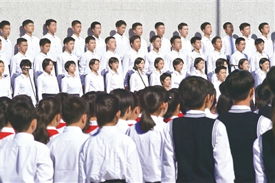 “白山黑水齊出動,復(fù)興我中華……”殘歷碑廣場上,80名青年學(xué)生鏗鏘有力的朗誦聲,讓《送戰(zhàn)友編歌壯行保國家》《黑水白山•調(diào)寄滿江紅》《濱江抒懷》三首分別由東北抗聯(lián)英雄楊靖宇、趙尚志、趙一曼當(dāng)年寫下的詩詞響徹在沈陽“九•一八”歷史博物館上空。