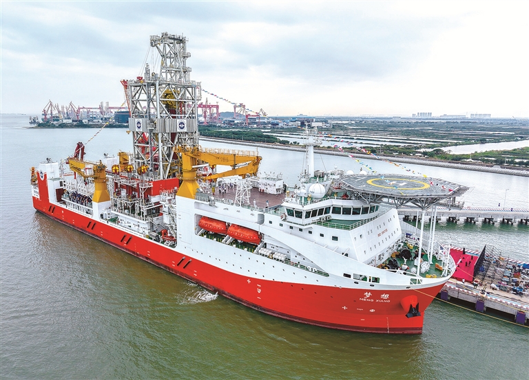 “十四五”時期,我國持續(xù)加強關(guān)鍵核心技術(shù)攻關(guān)和成果應用,加快高端裝備、先進制造等領(lǐng)域關(guān)鍵技術(shù)攻關(guān),推動傳統(tǒng)產(chǎn)業(yè)向高端化、智能化、綠色化轉(zhuǎn)型。圖為擁有最大11000米的鉆深能力、我國自主設計建造的首艘大洋鉆探船“夢想”號,該船于“十四五”時期正式入列(資料圖片)。新華社記者 劉大偉 攝