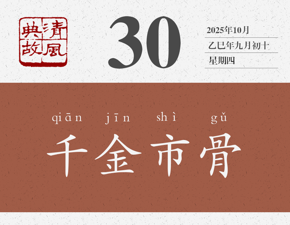 《戰(zhàn)國(guó)策•燕策一》載,燕昭王求賢若渴,但一時(shí)手足無(wú)措,于是去拜訪郭隗。郭隗給他講了一個(gè)故事:“古之君人,有以千金求千里馬者,三年不能得。涓人言于君曰:‘請(qǐng)求之。’君遣之,三月得千里馬。馬已死,買(mǎi)其首五百金,反以報(bào)君。君大怒曰:‘所求者生馬,安事死馬而捐五百金?’涓人對(duì)曰:‘死馬且市之五百金,況生馬乎?天下必以王為能市馬,馬今至矣!’于是不能期年,千里之馬至者三。”