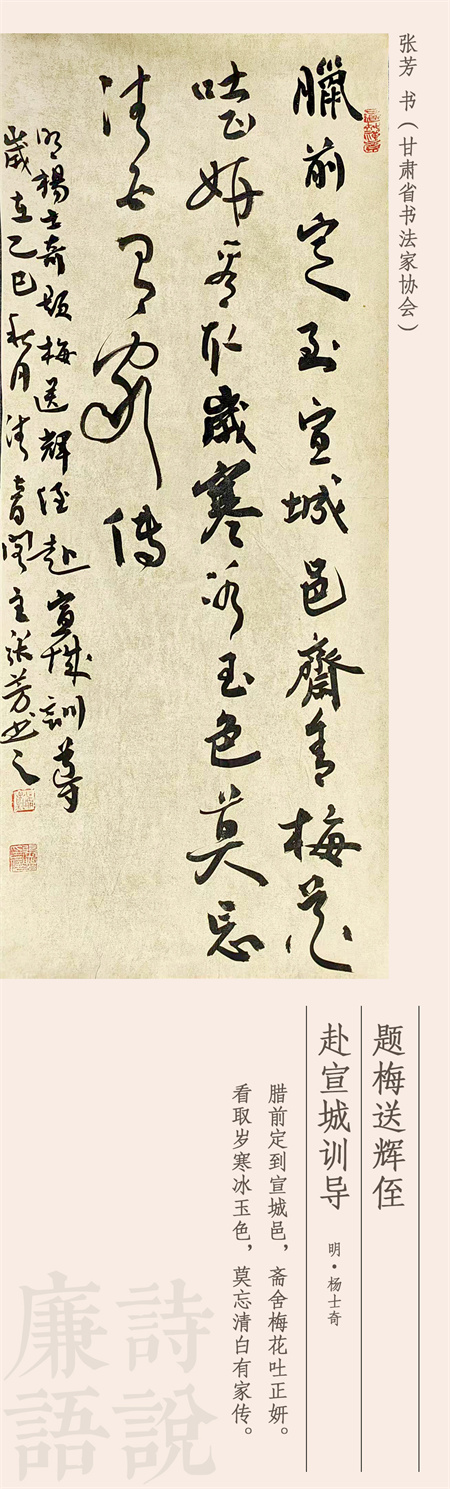 楊士奇是明初重臣,歷經五朝,任職四十余年,長期擔任內閣首輔,位極人臣,聲望卓著。楊士奇做事謹慎,為官清廉,注重家教,以清白廉潔教育子孫,子侄輩為官者眾多,大都保持了良好的官聲和操守。他的一個堂侄楊輝初次走上仕途,要去宣城擔任儒學訓導,這是一個從八品的主管當?shù)乜婆e、教育工作的小官。楊士奇很重視侄子的仕途第一步,臨行前想把家族的家風家訓強調一下,便專門畫了一幅梅花圖,并題下這首詩,送給侄兒。