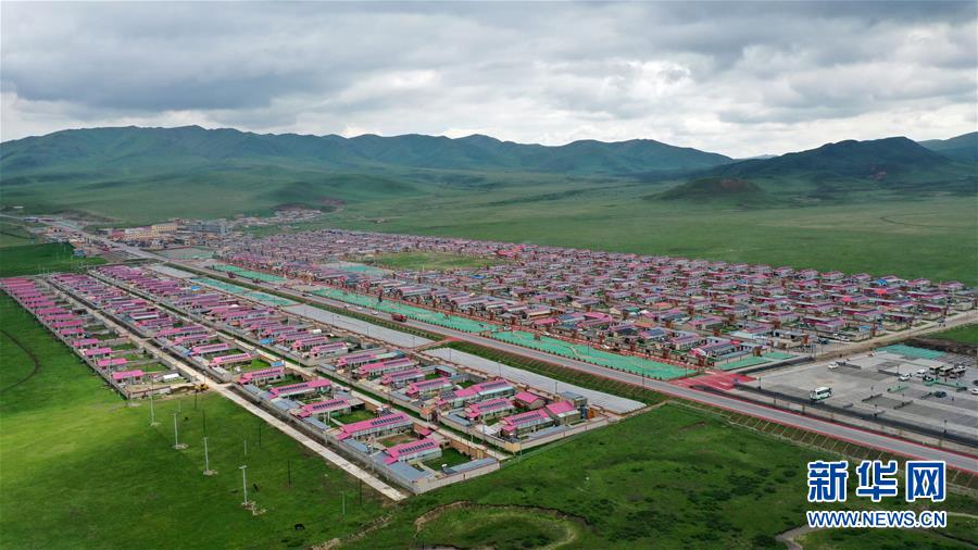 這是6月20日拍攝的甘南藏族自治州碌曲縣尕海鎮(zhèn)尕秀村村貌(無人機照片)。 新華社記者 陳斌 攝