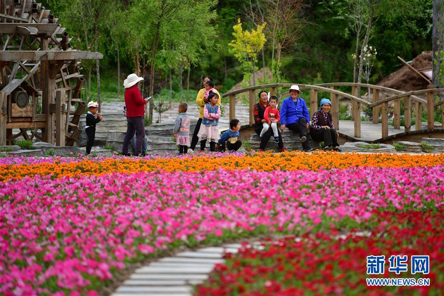 村民在甘南藏族自治州臨潭縣八角鎮(zhèn)牙扎村的花海景點休憩(5月28日攝)。 新華社記者 陳斌 攝