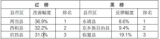 2.紅榜為改善幅度排名前3位的縣市區(qū),黑榜為反彈幅度排名前3位的縣市區(qū)。