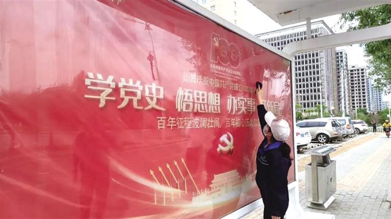 新區(qū)公交公司充分利用公交車這一載體,結(jié)合黨史學(xué)習(xí)教育和慶祝建黨100周年公益宣傳標(biāo)語,精心設(shè)計(jì)了宣傳畫,張貼在新區(qū)公交11路、12路、13路、14路、15路、16路等公交車車身醒目位置;在公交車車廂內(nèi)的燈箱、宣傳欄圖文并茂宣傳黨史故事,生動(dòng)形象地展示黨的光輝歷程;并在公交車車尾屏和出租車頂燈滾動(dòng)播放宣傳標(biāo)語。同時(shí),該公司在重要路段沿線公交站亭張貼了黨史學(xué)習(xí)宣傳海報(bào),打造出以紅色為主題的宣傳走廊,通過一個(gè)個(gè)黨史流動(dòng)宣傳站,讓黨史學(xué)習(xí)教育深入街巷,將黨史知識(shí)潛移默化傳遞給市民,引導(dǎo)廣大市民知史愛黨、知史愛國(guó)。