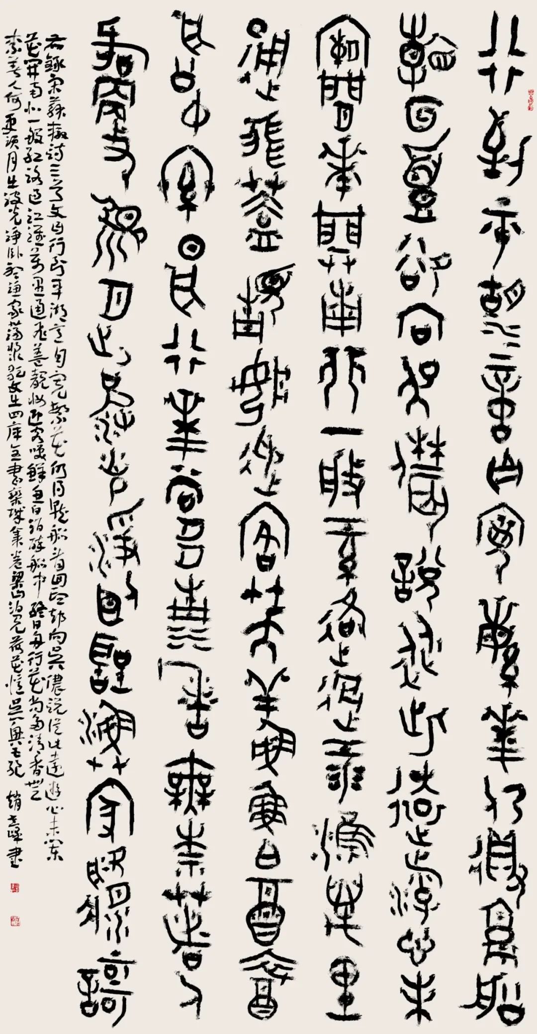 展覽作品風格多樣,立意高遠。作品模仿少、創(chuàng)造多,減少外在形式,力求豐富內涵。“二王”體系雖然占主流,但是寫經、漢簡占有相當大的數(shù)量,百花齊放,百花爭艷。極大地改變了“有時展出的作品還存在著抄寫代替書寫,不諳文句,不解文意,不識文字,不具文心”的情況。書法家們把寄情抒懷與記言存史相結合,將個人藝術追求與時代發(fā)展潮流相貫通,顯示了深厚扎實的藝術功力,呈現(xiàn)了創(chuàng)新發(fā)展的最新成果。