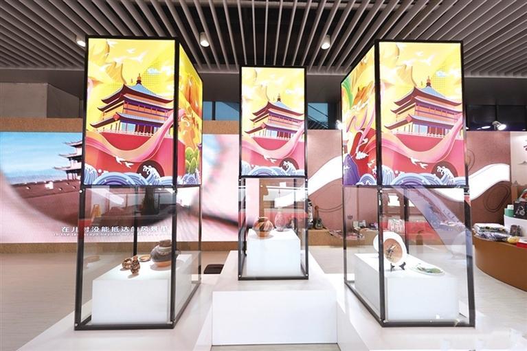 在展區(qū)燈光映照下,蘊含古樸之美的大地灣彩陶在甘肅省文化和旅游廳組織搭建的人文交流——“中國旅游”甘肅展臺天水展區(qū)熠熠生輝,吸引了眾多目光。由秦安縣康坡陶藝農民專業(yè)合作社提供的8件大地灣彩陶,無論是創(chuàng)意構思還是表現(xiàn)手法,都體現(xiàn)了5000多年前先民高超的造型能力和藝術水平,瓶身圖案的韻律節(jié)奏及對稱均衡的形式完美地呈現(xiàn)了彩陶藝術作品的魅力,為進博會甘肅展臺增添了厚重的人文氣息。