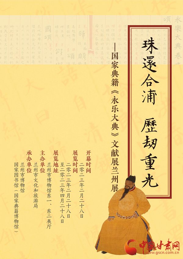 中國(guó)甘肅網(wǎng)2月27日訊 (本網(wǎng)記者 張?zhí)m琴)2月28日上午10點(diǎn),蘭州市博物館將攜手國(guó)家圖書館(國(guó)家典籍博物館)舉辦“珠還合浦 歷劫重光——國(guó)家典籍《永樂大典》文獻(xiàn)展蘭州展”,遴選《永樂大典》62件與蘭州相關(guān)的仿真影印本資料進(jìn)行展出。此次展覽將持續(xù)至4月28日,為期2個(gè)月。