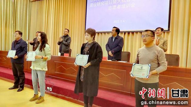 中新網(wǎng)甘肅新聞3月7日電 (記者 馮志軍)近日,甘肅省“強(qiáng)科技”社會心理服務(wù)體系建設(shè)研究項(xiàng)目啟動研討會暨天??h社會心理服務(wù)志愿者培訓(xùn)活動在武威市天??h舉行。甘肅省心理咨詢師學(xué)會為當(dāng)?shù)貐⒓又袊茖W(xué)院心理研究所心理咨詢師基礎(chǔ)培訓(xùn)學(xué)習(xí)并經(jīng)考核合格的學(xué)員,頒發(fā)了心理咨詢師基礎(chǔ)培訓(xùn)合格證書。