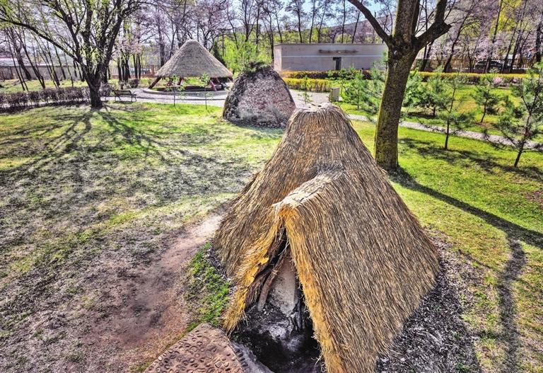 大地灣二期遺址半地穴式房址,地面部分為復(fù)原。 汝 林