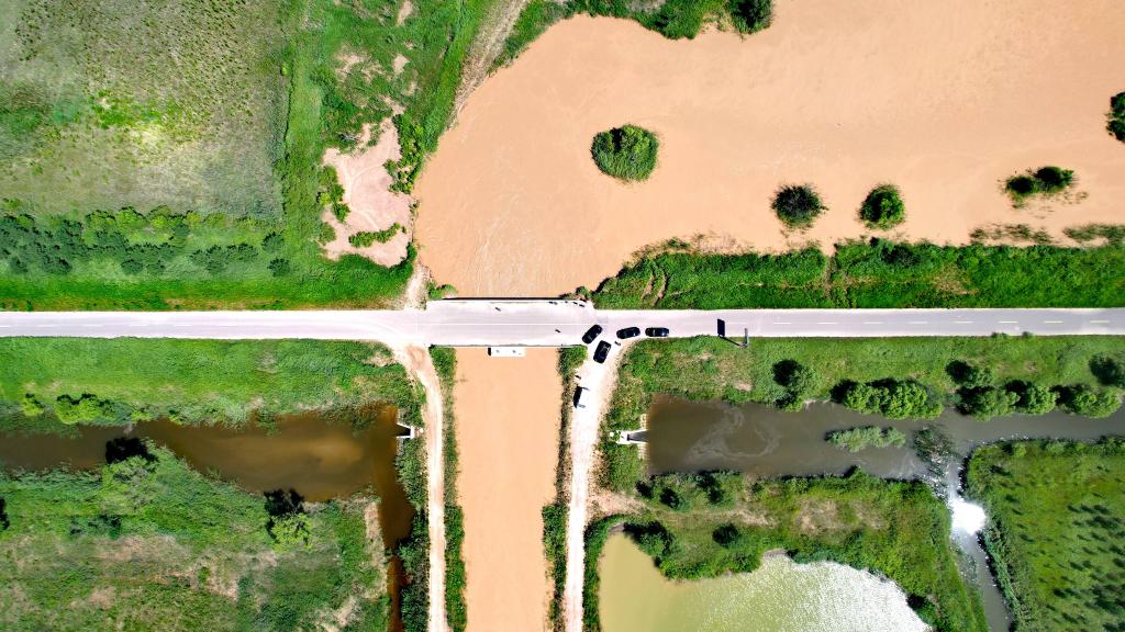 黃河派出所和黃河河務(wù)局水政監(jiān)察大隊(duì)人員對(duì)刁口河生態(tài)補(bǔ)水進(jìn)行巡查。新華社記者 劉詩(shī)平 攝