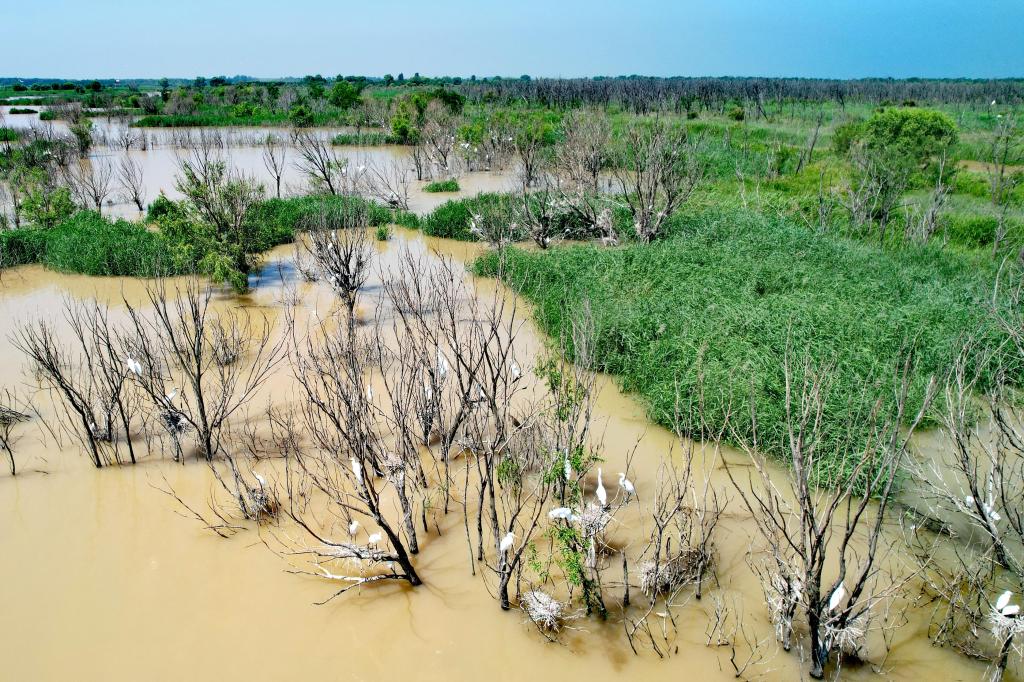 黃河三角洲濕地里的白鷺群。新華社記者 劉詩(shī)平 攝