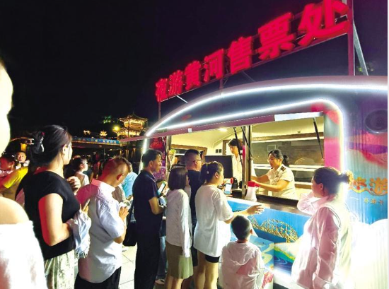 據(jù)了解,今夏“夜游黃河”運營火爆,日均接待游客人數(shù)較去年同期翻了三倍,入夏以來,累計接待游客近20萬人次,同比增幅超285%。為保障運力,蘭州水運集團投入大型運營船舶10艘,每晚運行航次達(dá)35次,其中游客量最多的白塔山碼頭投入運營船舶5艘,平均每15分鐘就有一班游船發(fā)出,每艘游船均基本處于滿員狀態(tài)。