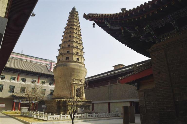 多子塔為八角十三層實(shí)心磚塔,1987年維修時(shí),在塔剎內(nèi)及頂層塔身中起出一批珍貴文物。白衣菩薩殿,因殿內(nèi)原掛有白衣大士觀世音菩薩畫像而得名,屬于白衣寺早期建筑。