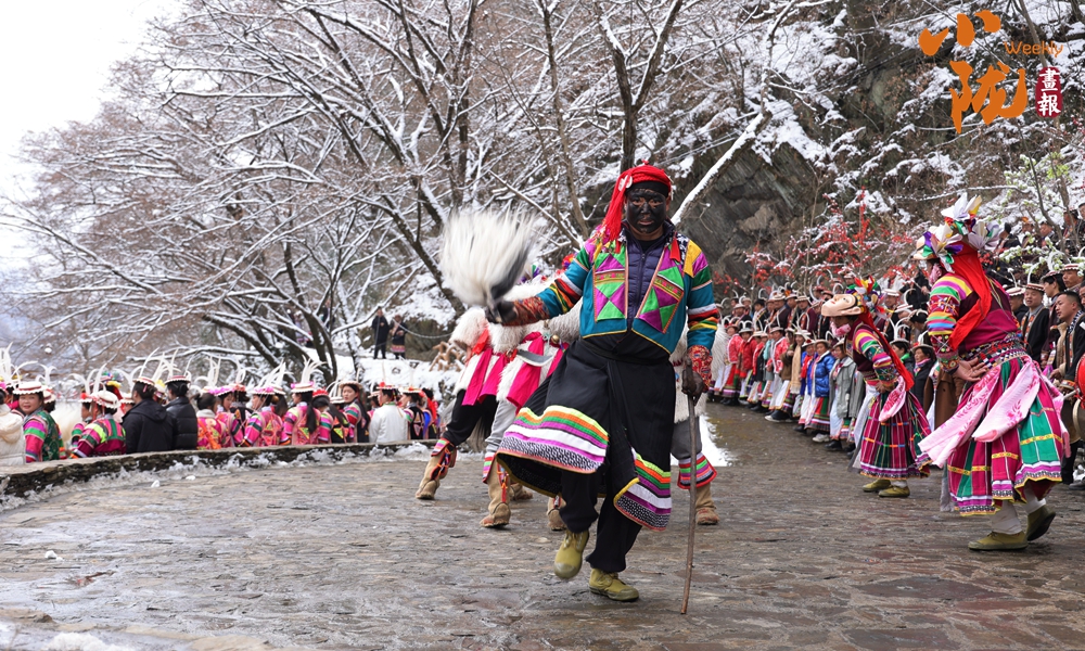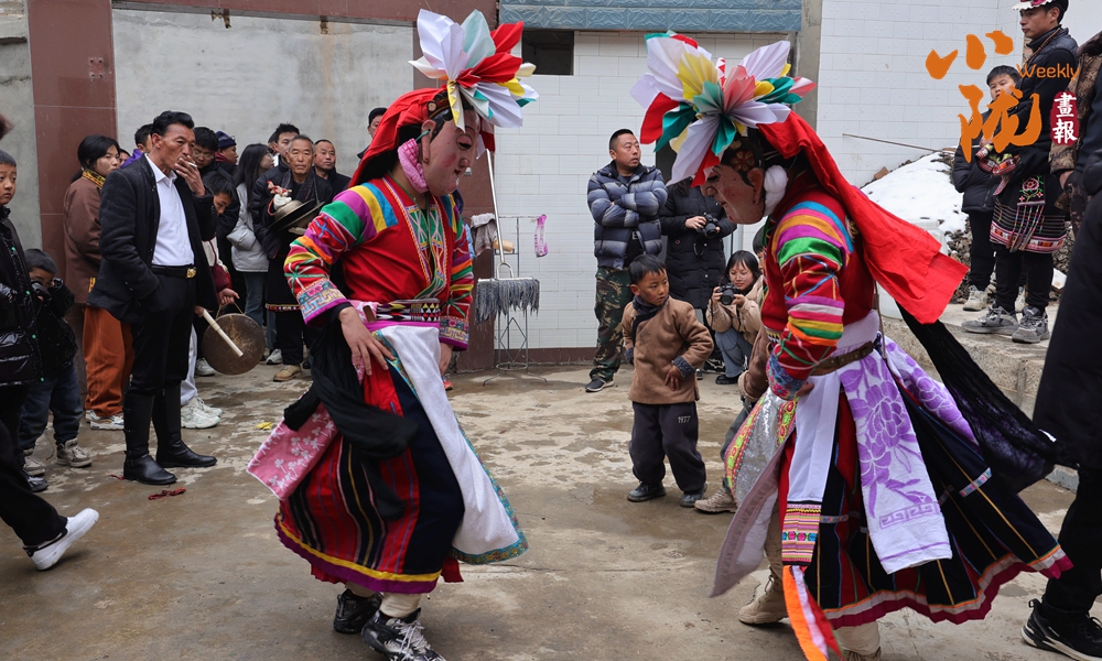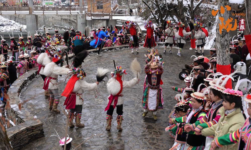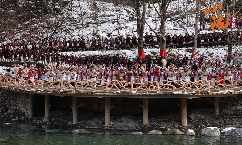 河畔的小路上和河岸的觀景臺上,白馬人身著特色服飾,錯(cuò)落有致,載歌載舞,跳起了獨(dú)具魅力的“池哥晝”。