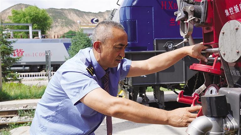 中國甘肅網(wǎng)7月9日訊 據(jù)蘭州晚報(bào)報(bào)道(記者 譚安麗 文/圖 通訊員 趙童)仲夏時(shí)節(jié),陽光明媚,沐浴著大西北的陽光,一列飛馳的鋼鐵巨龍?jiān)陔]海線群山中穿行。駕駛室內(nèi),56歲的司機(jī)劉曉明手握閘把、眼睛緊緊注視前方,操縱著機(jī)車穿山越谷,快速馳騁。