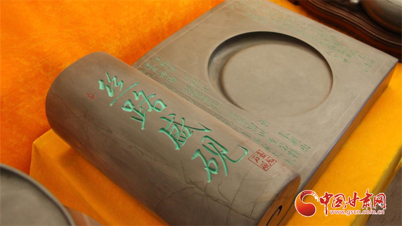 嘉峪石硯,取材于嘉峪山后的黑山峽深處,故又稱“黑山石硯”,是目前所知最早的古石硯之一。這種石硯質(zhì)堅(jiān)而細(xì)、扣之有聲,發(fā)墨快而不損毫,儲墨久而不干,“有史記載的三百多種石硯中,只有嘉峪石硯是帶有銘文出土的。這對于石硯的研究具有重要的史料價(jià)值。”劉宗學(xué)向?qū)嵺`團(tuán)成員系統(tǒng)地講述了嘉峪石硯的傳承歷史,并展示了自己以絲綢之路為主題創(chuàng)作的“絲路盛硯”組合石硯。這套石硯主要以甘肅十四個(gè)地州市的建筑、景觀、歷史人物為內(nèi)容,體現(xiàn)了甘肅省的根脈文化、黃河文化、長城文化、絲路文化、紅色文化等五大文化,表現(xiàn)出甘肅在絲綢之路經(jīng)濟(jì)發(fā)展與文化交流中的重要作用。