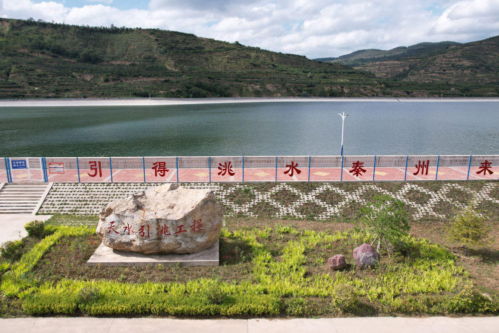這是近日在天水市秦州區(qū)拍攝的天水市城區(qū)引洮供水工程楊家灣調(diào)蓄水池(無人機照片)。新華社記者范培珅攝