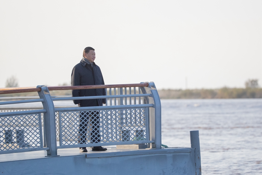 2021年10月,在黃河入???,總書記沿著木棧道步入濕地深處,實地察看這片動植物的樂園。
