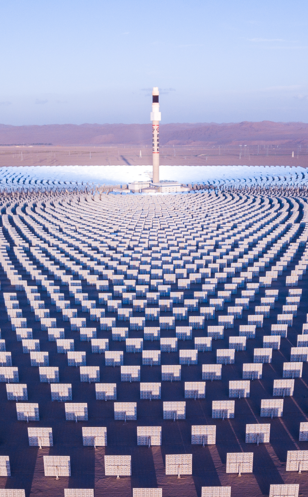這里有目前建成規(guī)模最大、吸熱塔最高、可24小時連續(xù)發(fā)電的100兆瓦級熔鹽塔式光熱電站,它也被稱為“超級鏡子發(fā)電站”。