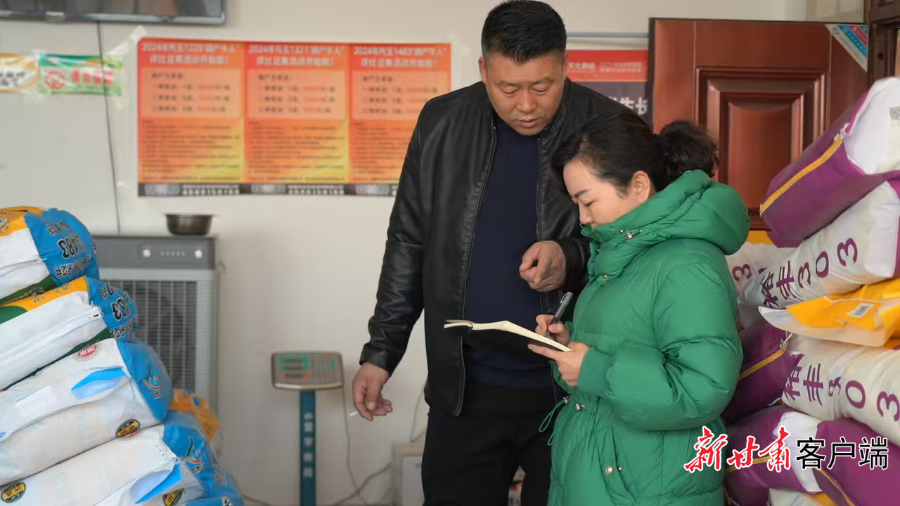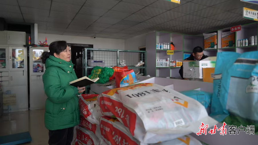 白曉艷走訪肅南縣糧食種植區(qū)的農(nóng)資店與倉庫。