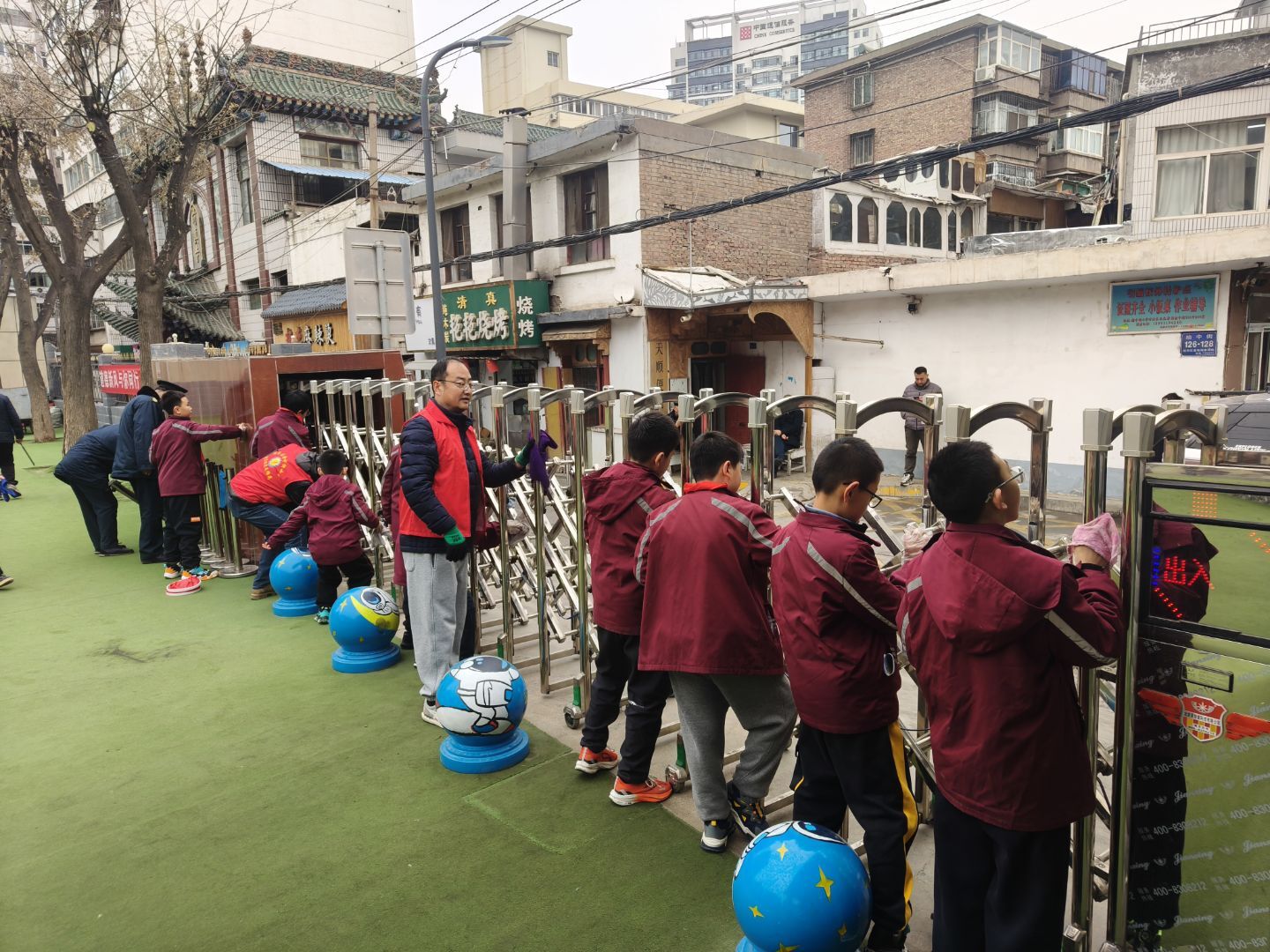 與此同時(shí),校門的外面,一場(chǎng)別開生面的“街道環(huán)境美化行動(dòng)”在學(xué)校與皋蘭路街道榆中街社區(qū)的攜手下展開。五年級(jí)一班的學(xué)生與學(xué)校黨員老師們分組行動(dòng),有的在路口指引行人遵守交通規(guī)則,有的向市民分發(fā)環(huán)保宣傳單,倡導(dǎo)綠色生活方式,還有的手持工具,清理垃圾、擦拭公共設(shè)施。他們的身影在街道上穿梭,用實(shí)際行動(dòng)詮釋雷鋒精神中對(duì)社會(huì)、對(duì)自然的責(zé)任擔(dān)當(dāng),讓雷鋒精神在這片土地上綻放出耀眼的光芒。