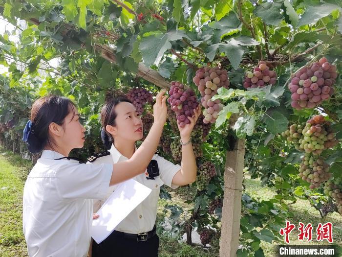 敦煌機場海關工作人員對敦煌葡萄進行源頭指導和管理。(資料圖)支婷婷 攝